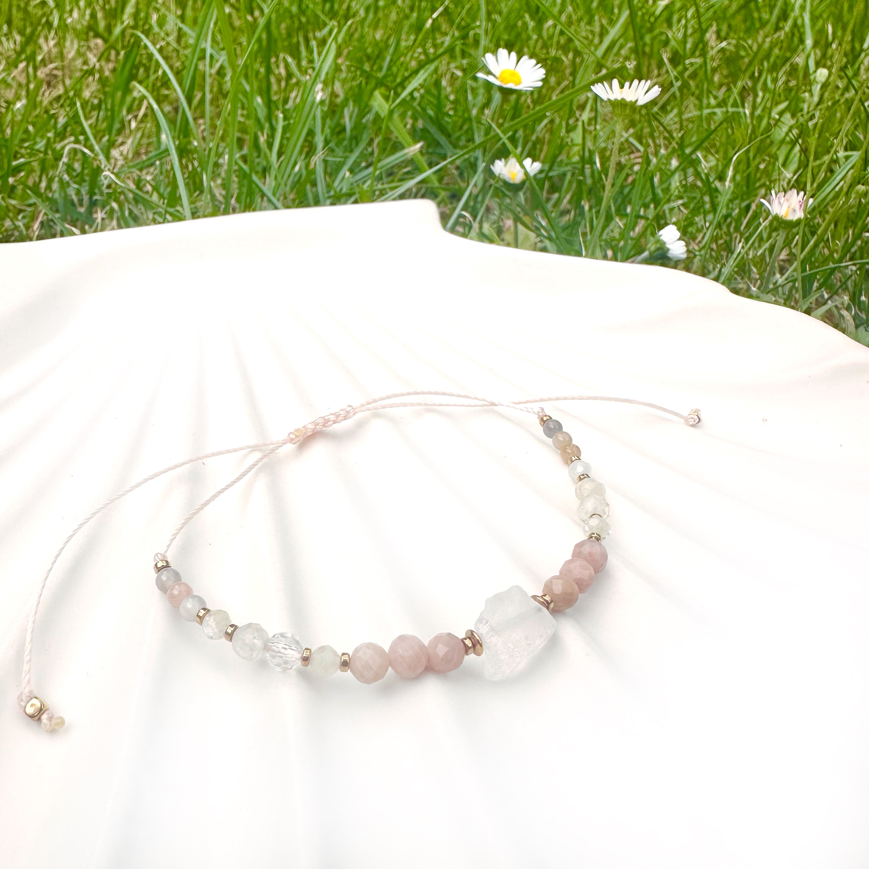 Ta bransoletka to amulet pełen blasku i harmonii – wspierający w przyciąganiu obfitości, szczęścia i pięknych zdarzeń. Jej energia łączy w sobie światło słońca i księżyca, tworząc równowagę i przepływ w każdym aspekcie życia.