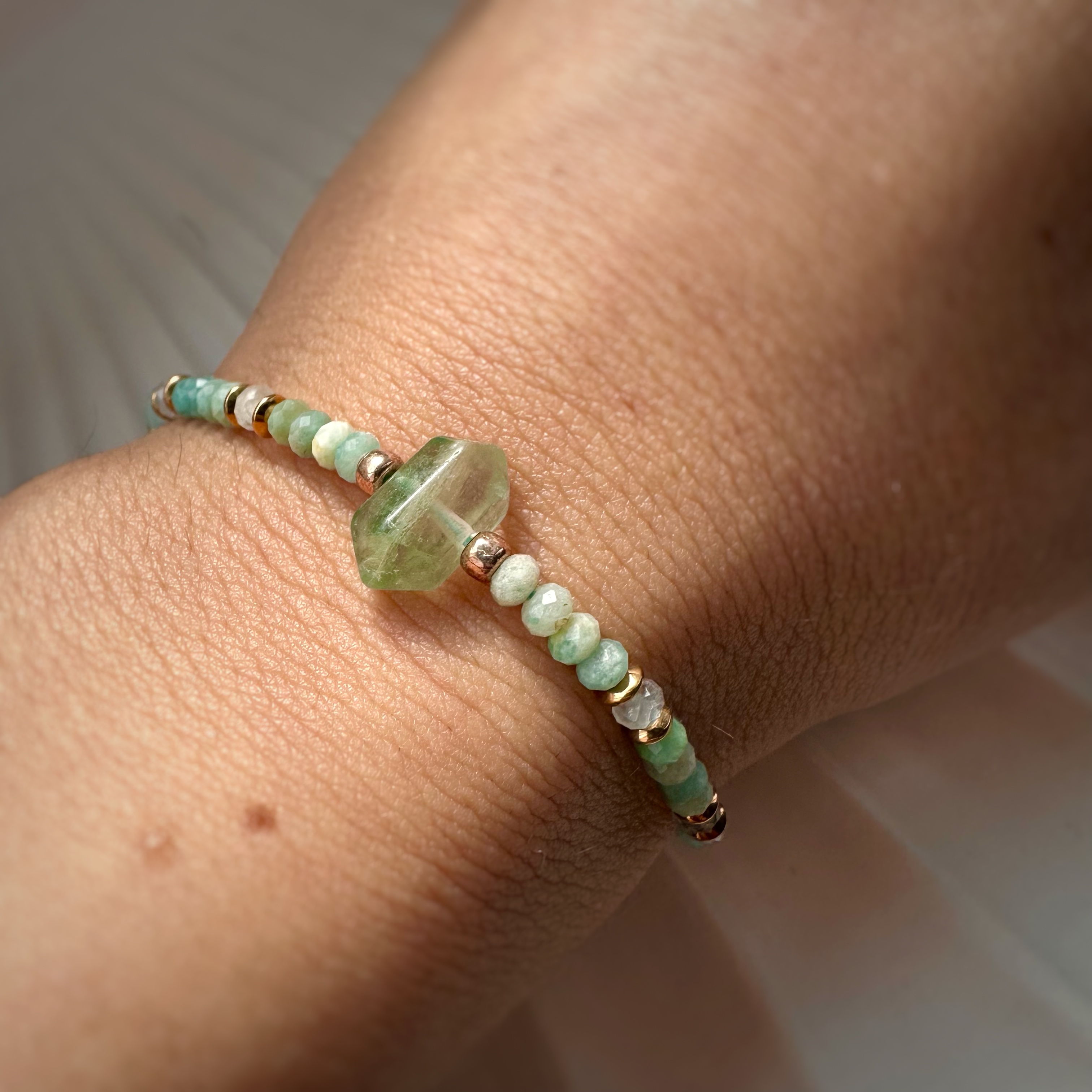 Ta bransoletka to amulet spokoju, jasności i wewnętrznego prowadzenia. Wzmacnia intuicję, koi emocje i otwiera serce na harmonię życia.