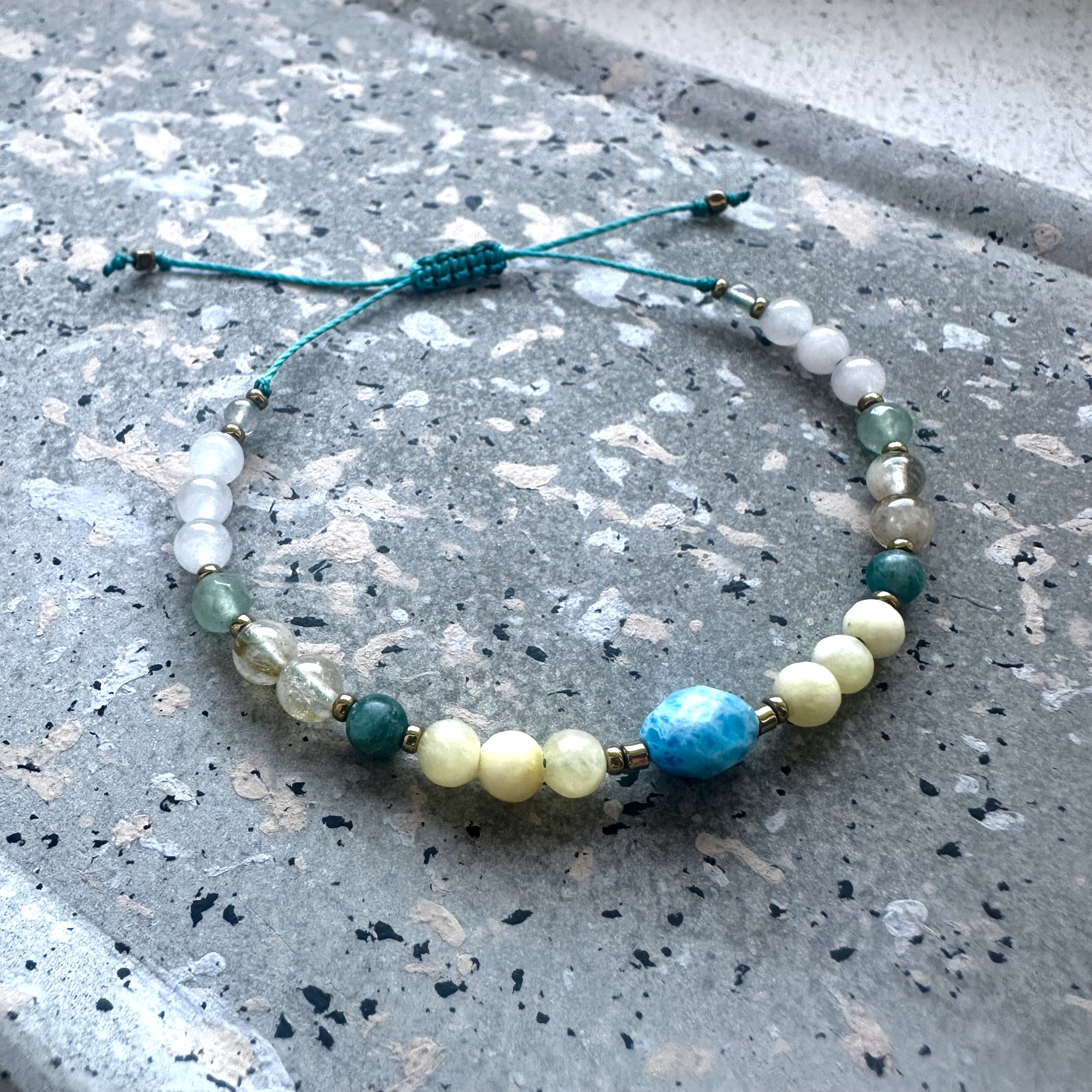 Połączenie tych kamieni tworzy harmonijną energię wspierającą manifestację marzeń, rozwój osobisty i przyciąganie pozytywnych zmian. Bransoletka może być noszona jako osobisty talizman intencji, który przypomina o sile myśli, serca i działania.