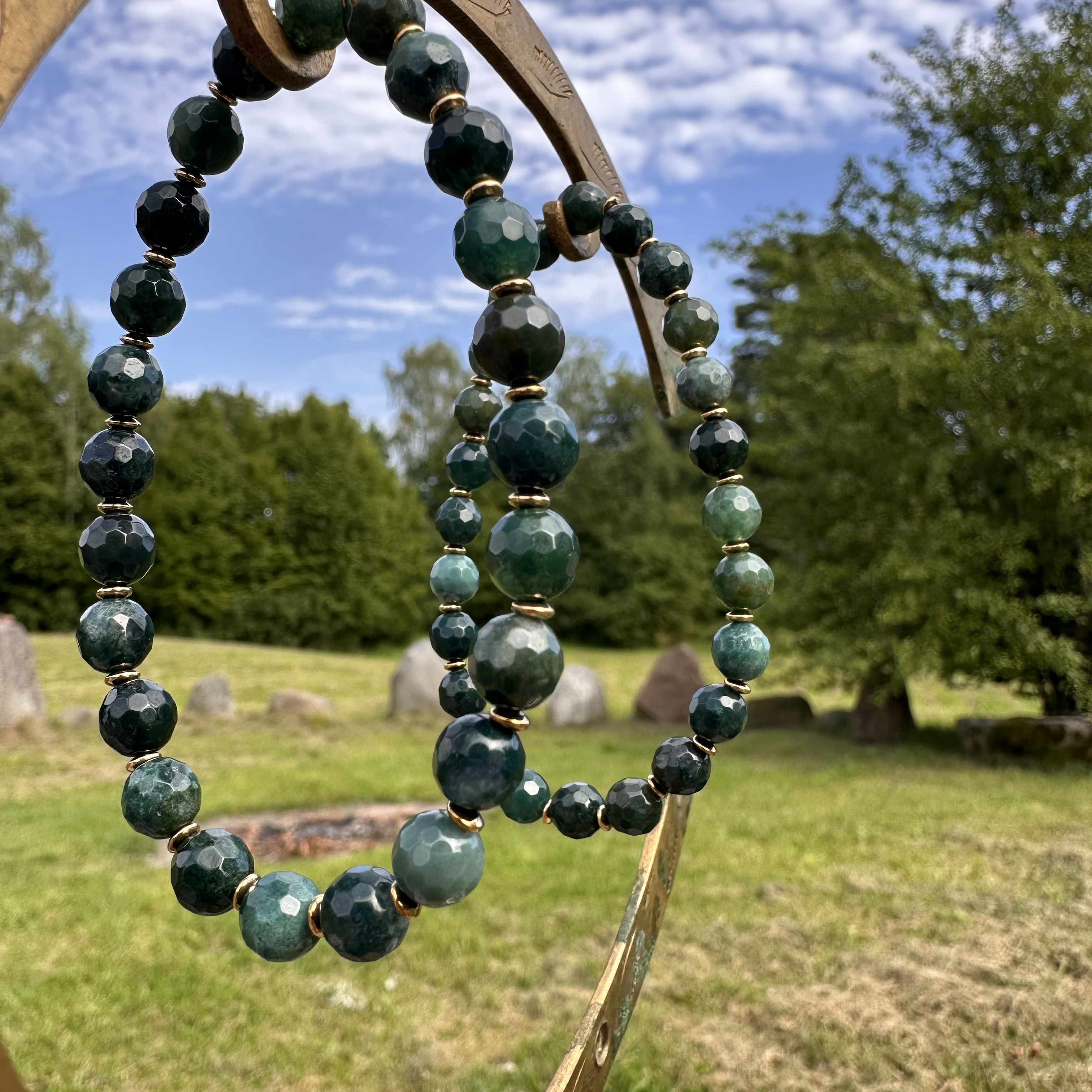 Ta bransoleta została stworzona, aby wspierać w drodze do stabilności, obfitości i wewnętrznej determinacji. Jej sercem jest agat mszysty – kamień głęboko związany z energią natury, wzrostem i uziemieniem.