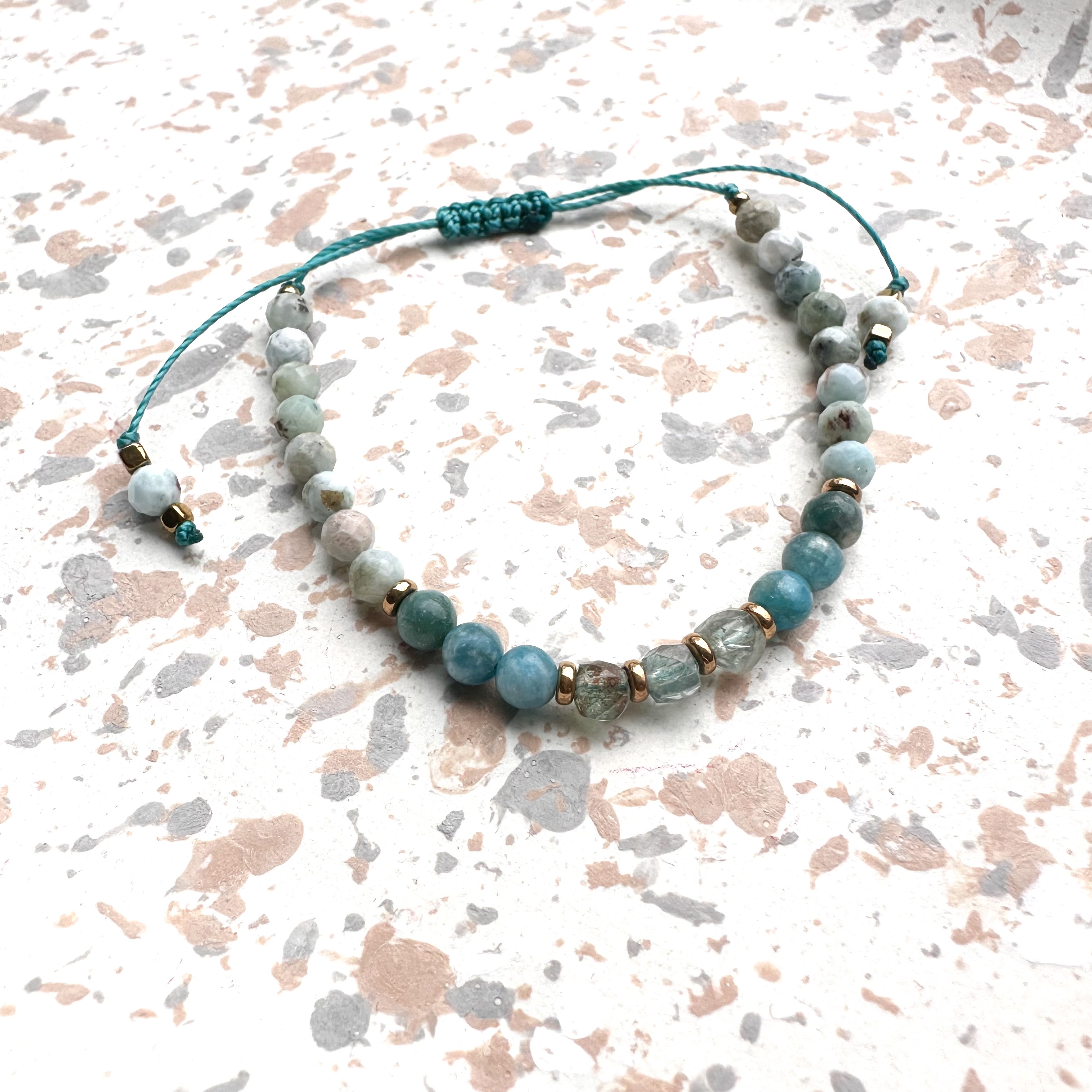 Ta wyjątkowa bransoletka została stworzona z kamieni o subtelnej, ale głębokiej energii. Łączy w sobie wibrację spokoju, intuicji, prawdy i emocjonalnej harmonii. To talizman dla osób, które chcą wrócić do siebie, wyciszyć chaos i odważniej podążać za głosem własnej duszy.