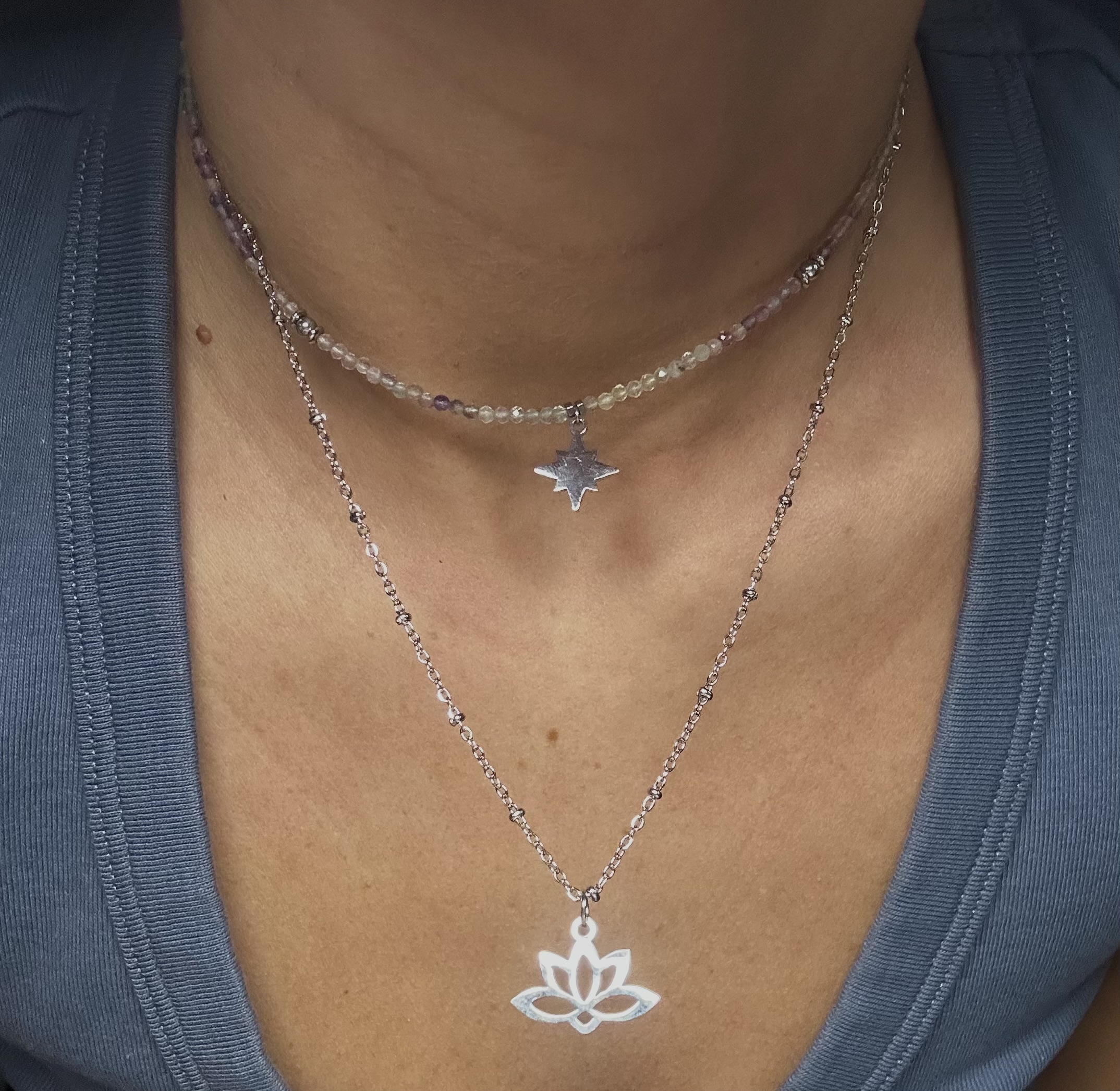 Fluoryt rozprasza chaos, wprowadza harmonię i wzmacnia aurę, a Gwiazda Isztar i lotos przypominają o boskiej lekkości i spokoju serca. To talizman dla kobiet, które pragną żyć w przepływie, z jasnością umysłu i połączeniem z Wyższym Ja.