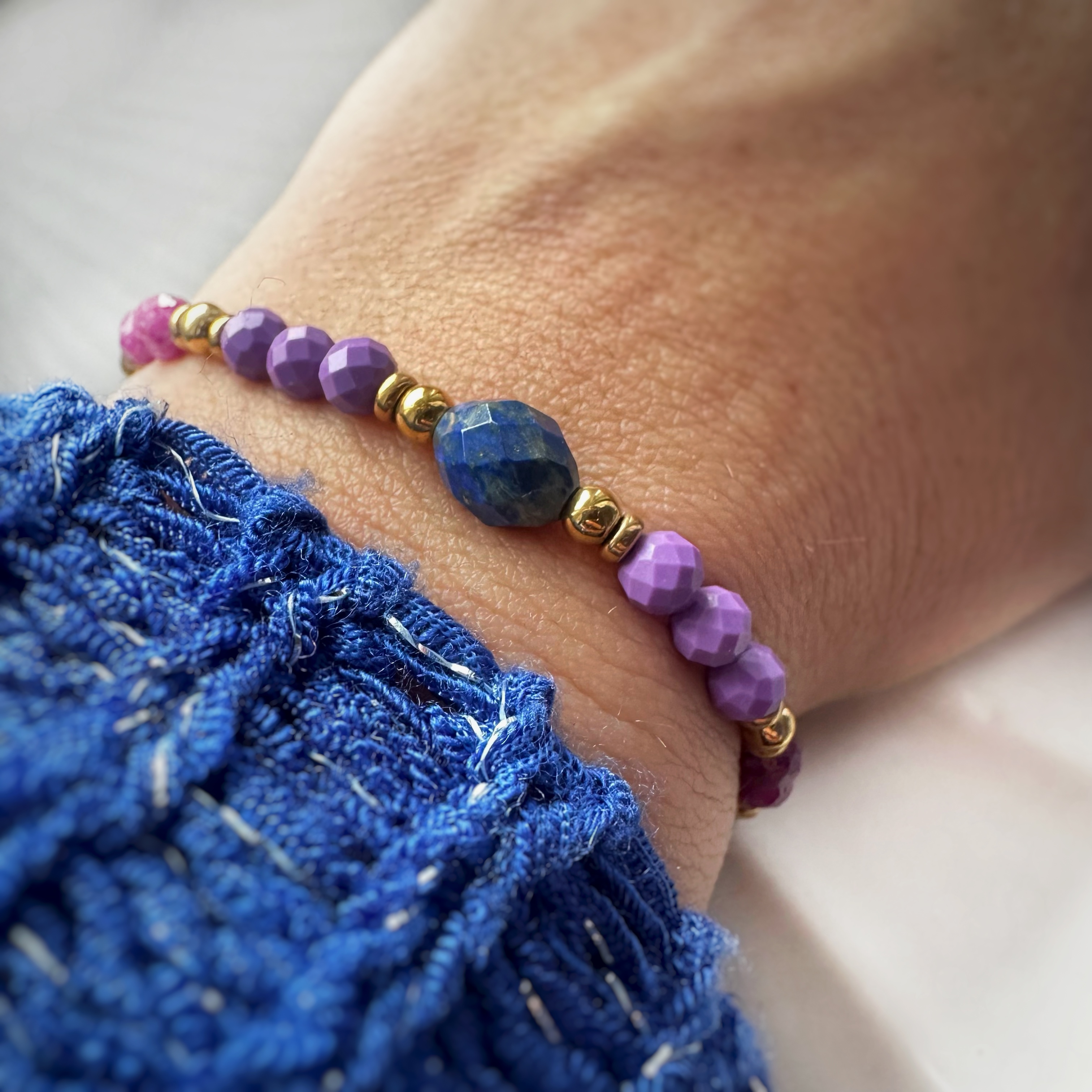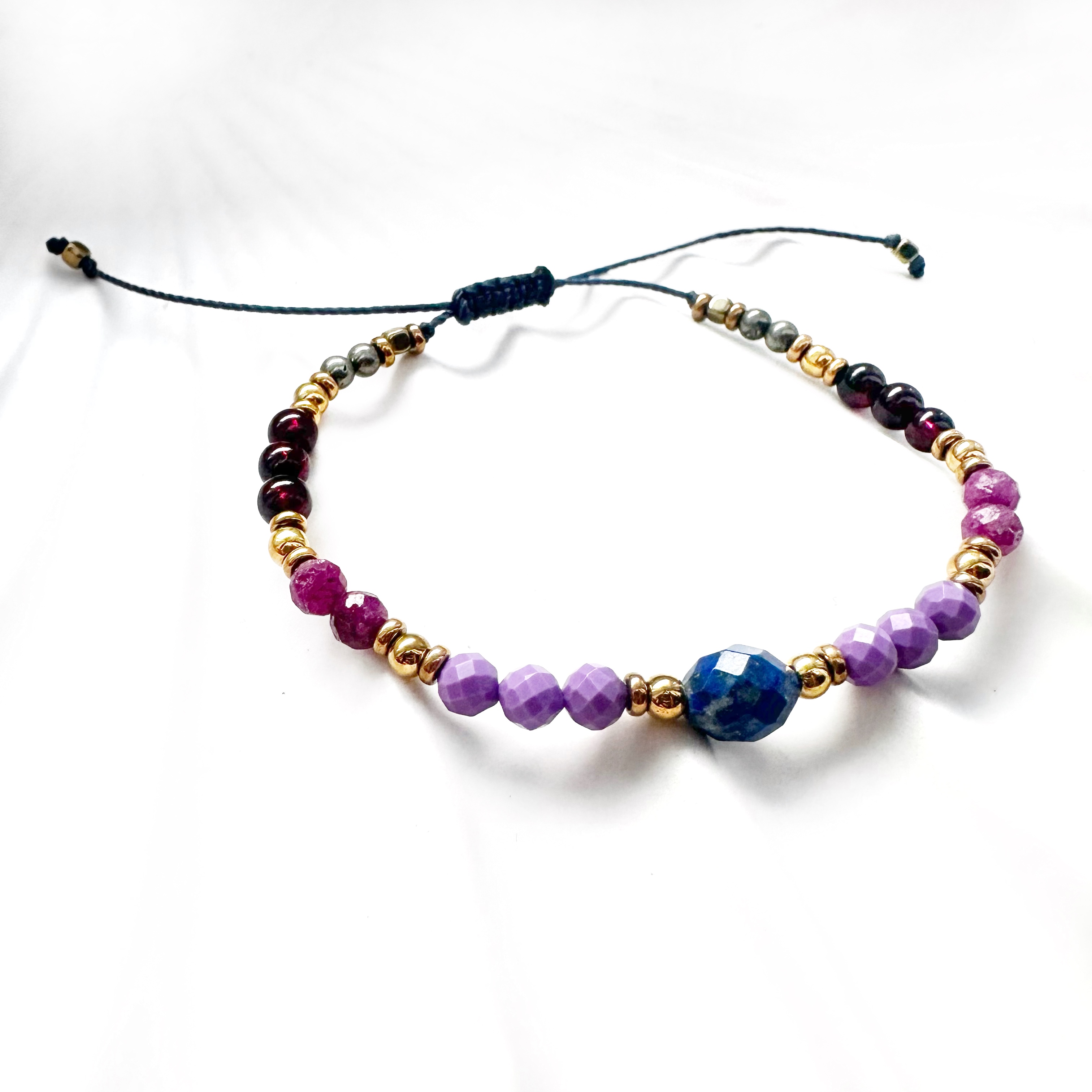 Bransoletka energetyczna z lapisem lazuli, fosfosyderytem, rubinem, granatem i pirytem