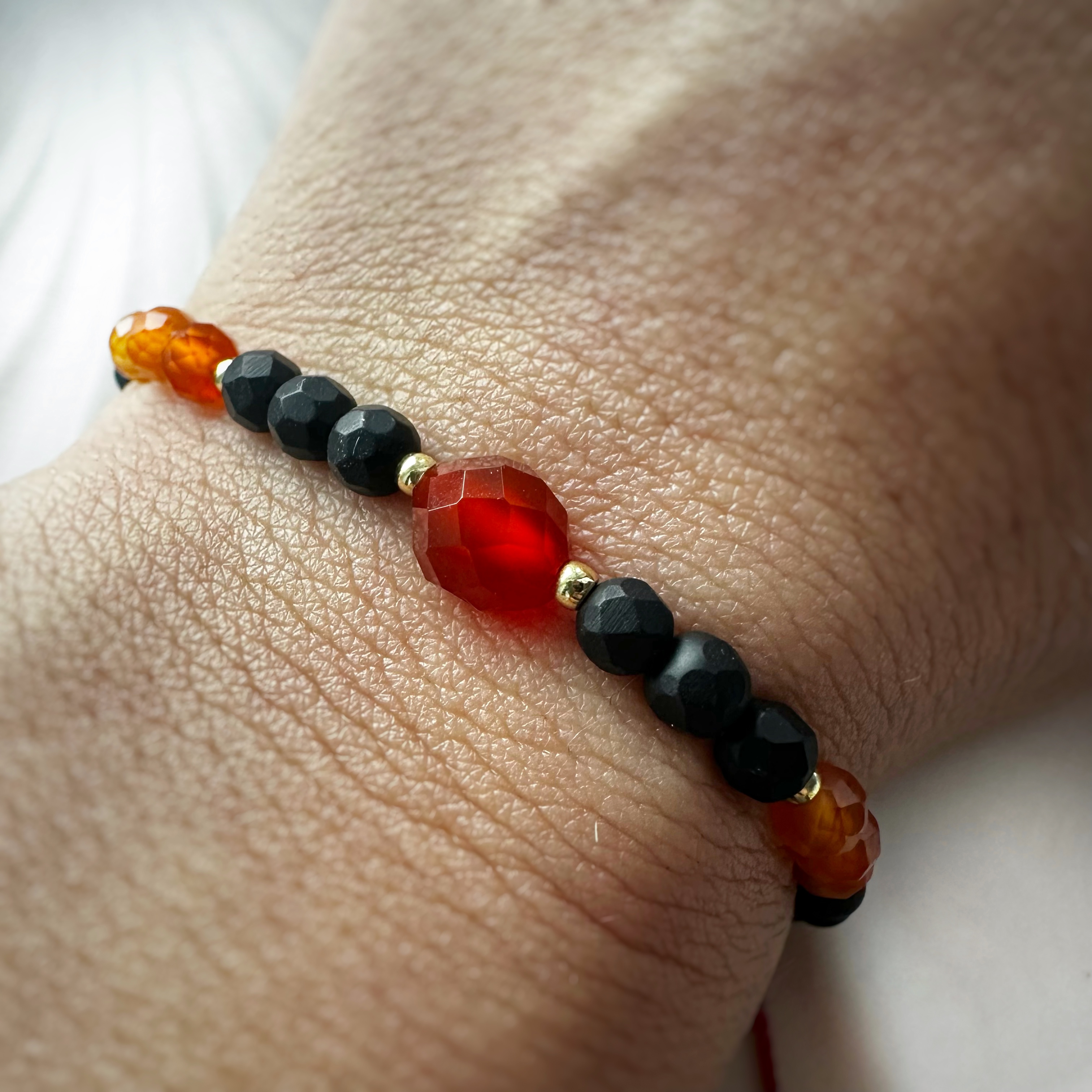 Bransoletka „Kod Ognistej Miłości, Odwagi i Ochrony” to talizman dla osób, które chcą łączyć siłę serca z wewnętrzną stabilnością i świadomą ochroną energetyczną. Kompozycja trzech kamieni tworzy harmonijne połączenie pasji, mocy działania i poczucia bezpieczeństwa.