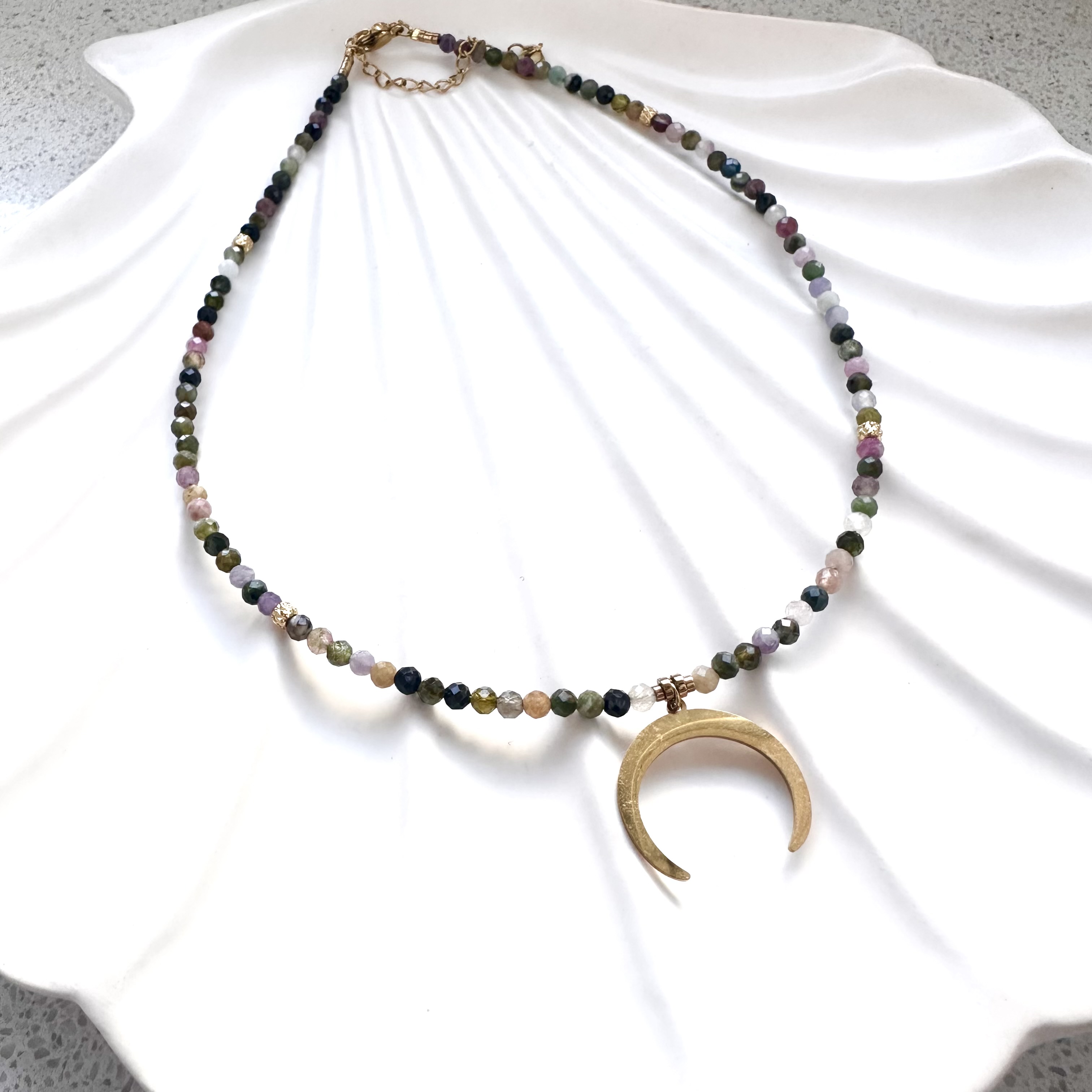 Naszyjnik z kolorowymi turmalinami i zawieszką Lunula