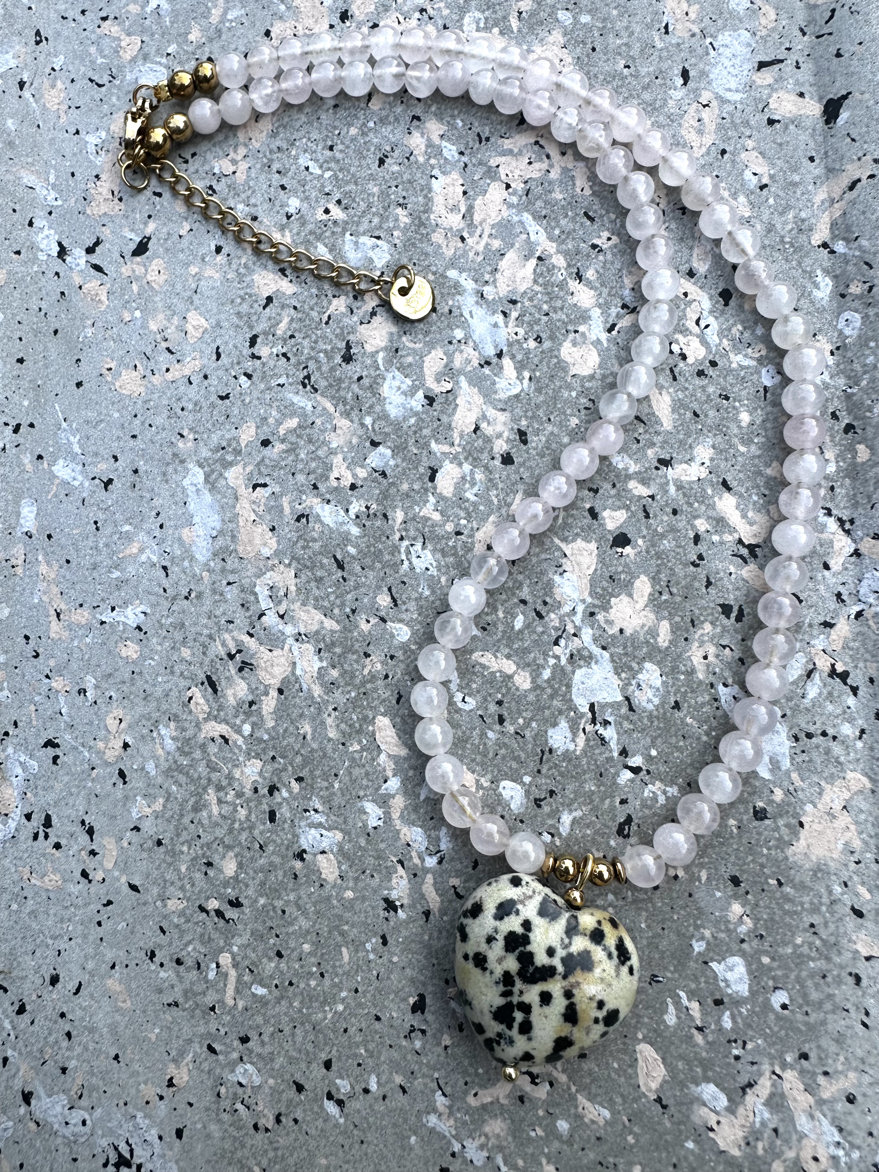 Naszyjnik Heart – Jaspis Dalmatyński & Kwarc Różowy