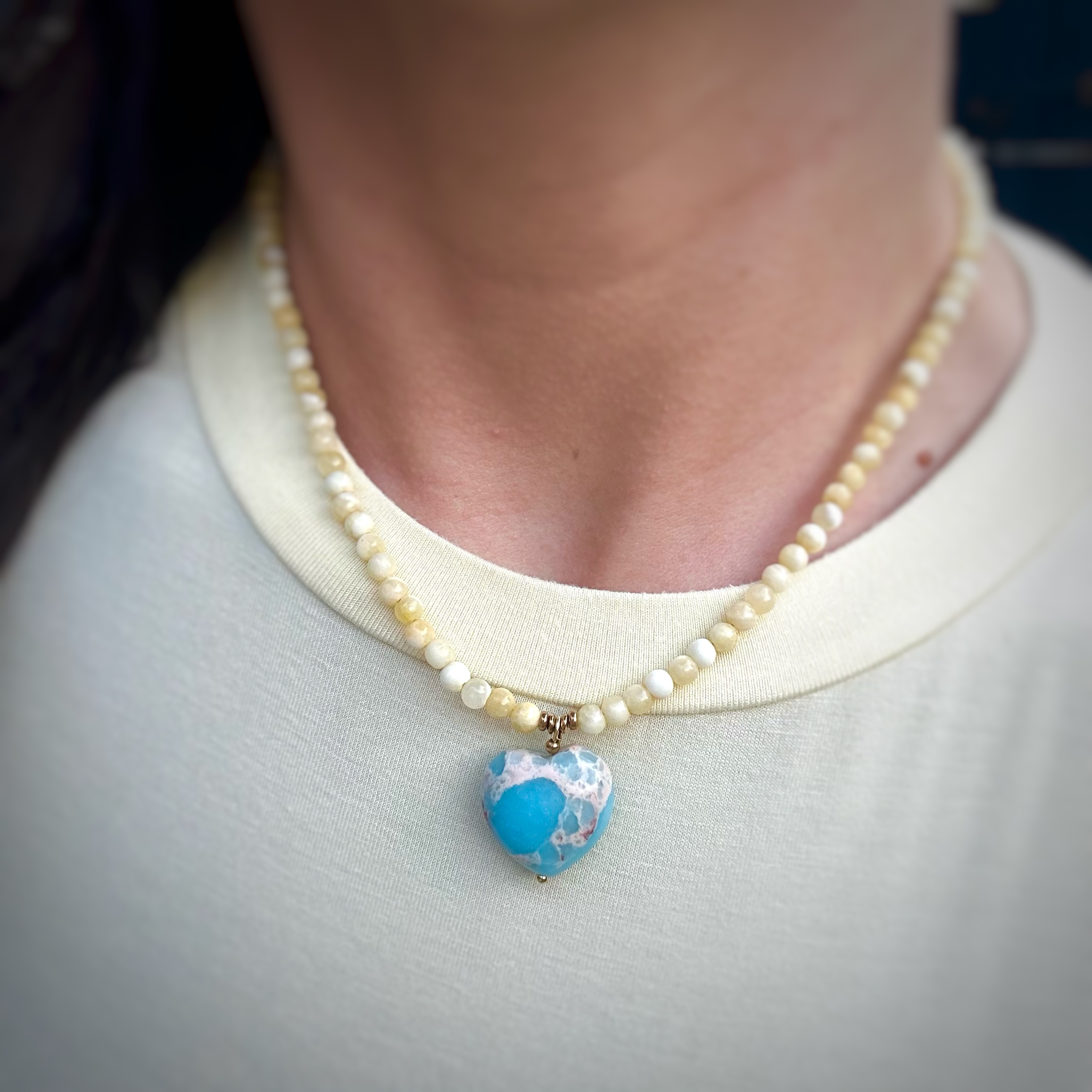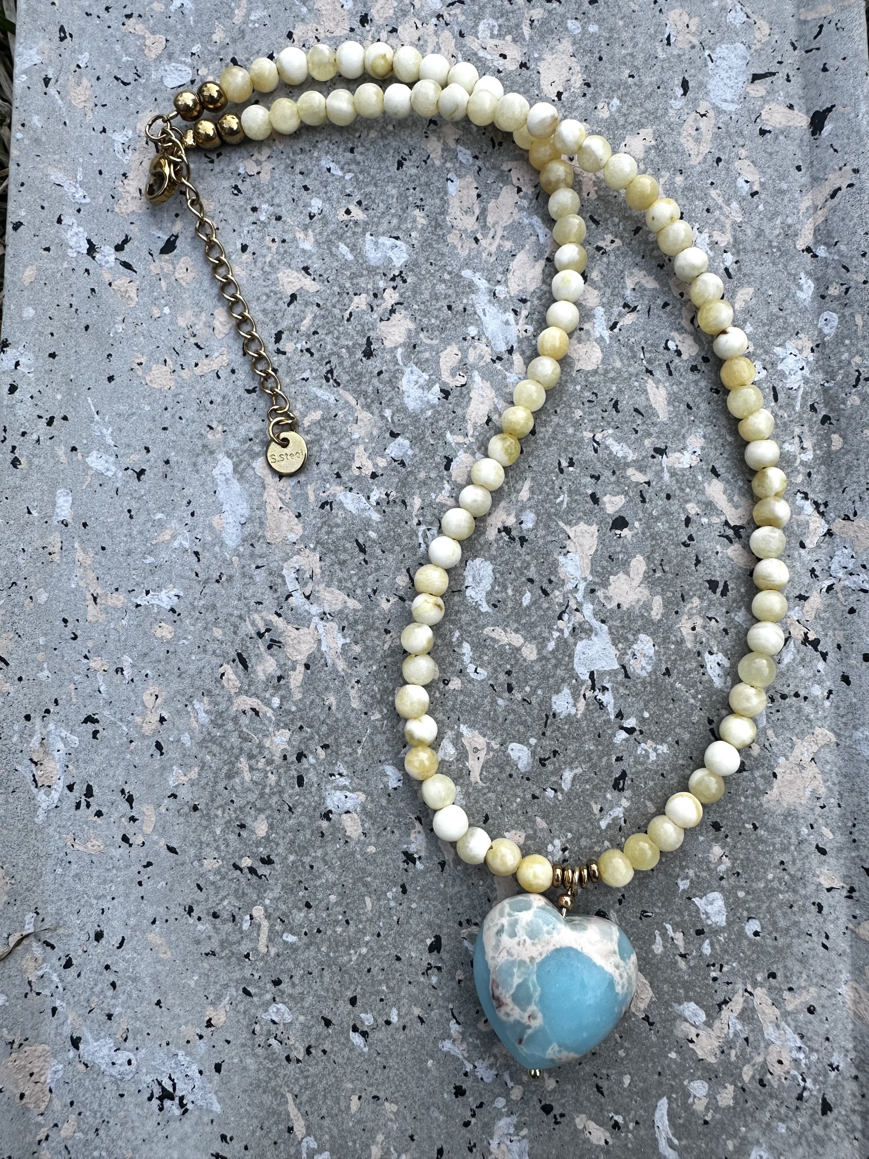 Naszyjnik HEART z kalcytem żółtym to biżuteria niosąca energię światła, radości i wewnętrznej mocy. Delikatne koraliki naturalnego kalcytu w ciepłych, słonecznych odcieniach tworzą harmonijną kompozycję, a centralne serce przyciąga uwagę i symbolizuje energię serca oraz życiowej siły.