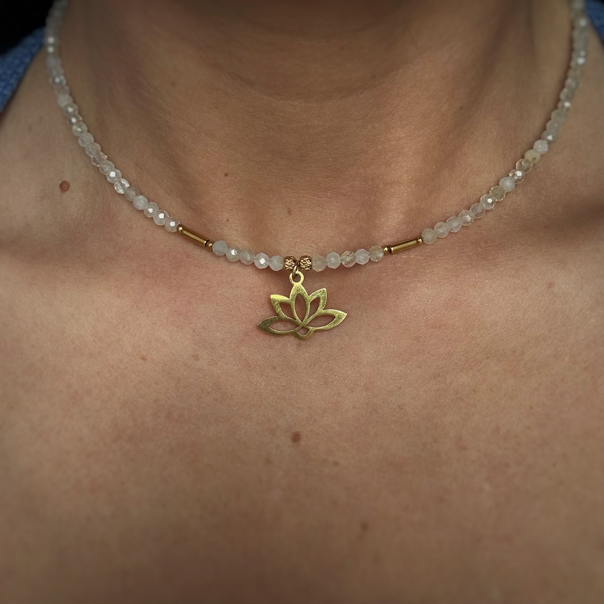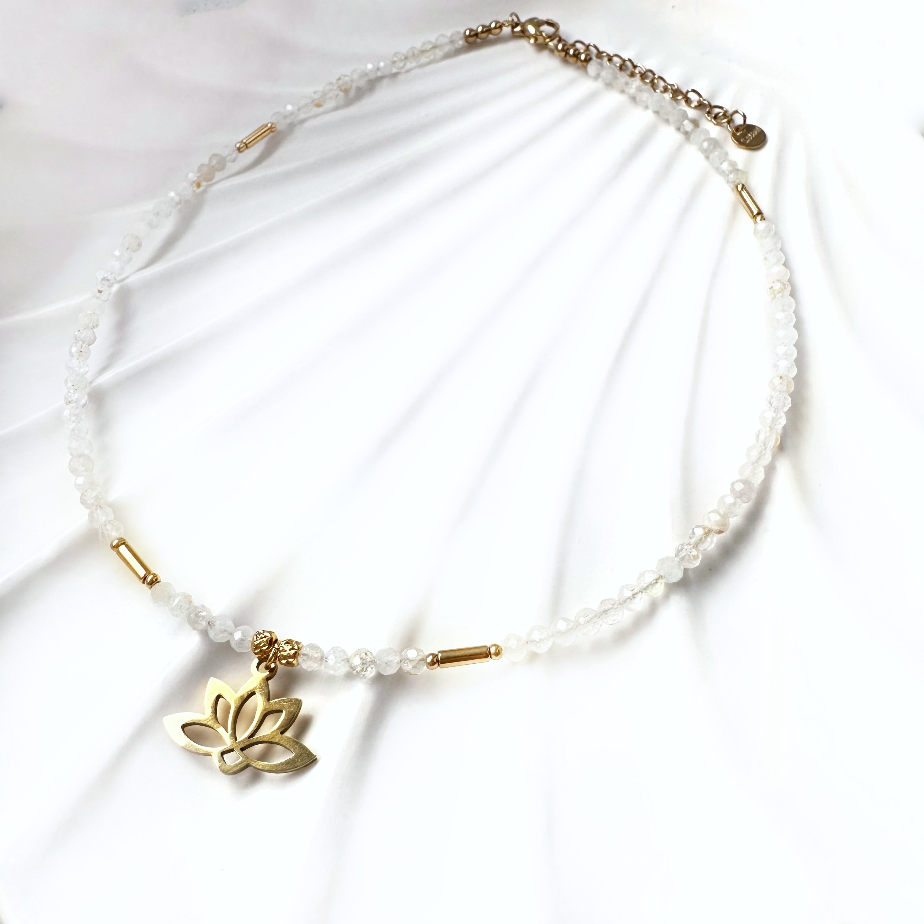 Naszyjnik „Kod Światła” z białymi topazami i złotym kwiatem lotosu to talizman klarowności, duchowego wzrostu i lekkości istnienia. Delikatna energia białego topazu rozświetla umysł, oczyszcza aurę i wspiera w manifestowaniu intencji płynących prosto z serca. Pomaga dostrzegać piękno codzienności i przyciąga sytuacje zgodne z najwyższym dobrem.