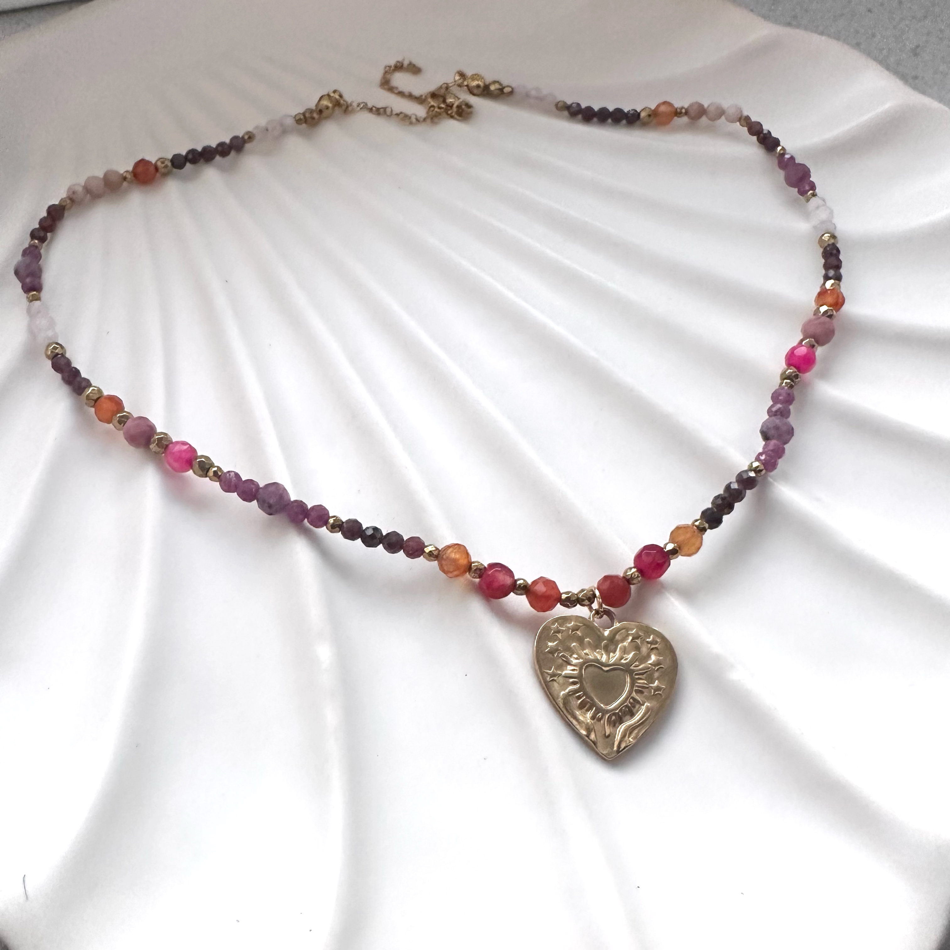 Ten naszyjnik został skomponowany z kamieni o niezwykłej mocy serca, pasji i przyciągania. Każdy z nich został wybrany tak, aby wspierać w otwieraniu się na miłość, budowaniu głębokich relacji i wzmacnianiu naturalnego magnetyzmu.