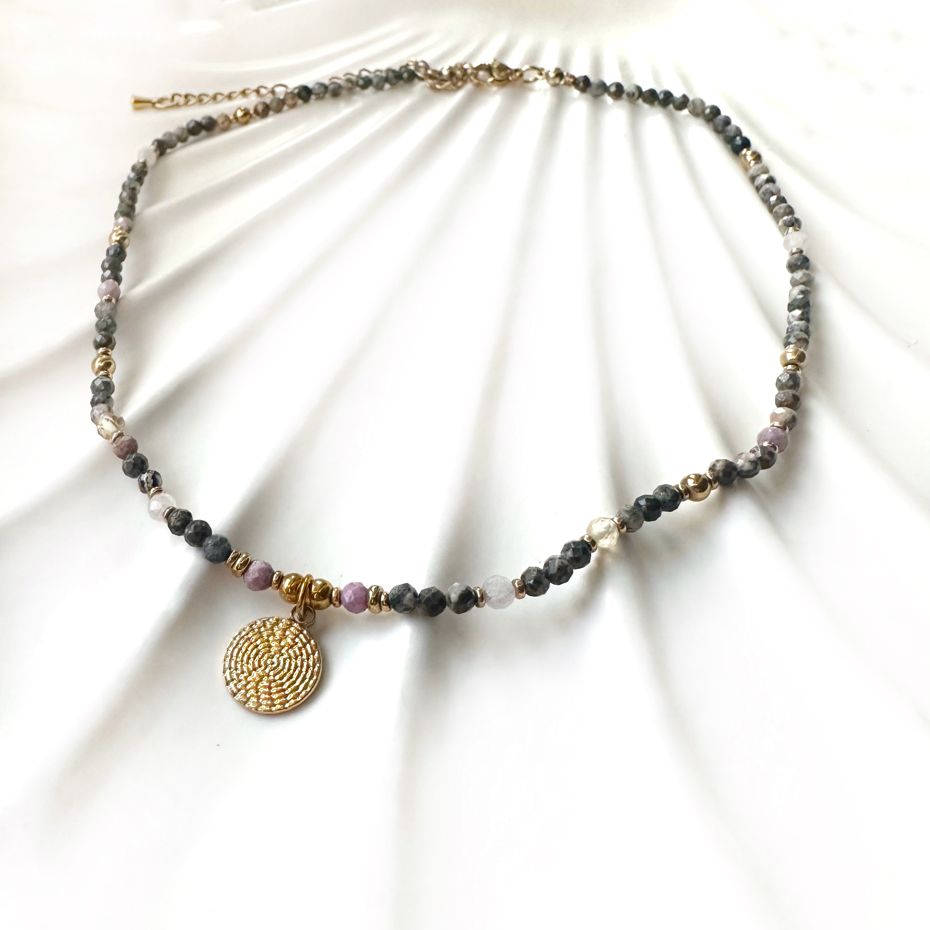 Delikatny, pełen subtelnej energii naszyjnik stworzony z kamieni, które wspierają serce, czułość i magnetyzm miłości. Rodochrozyt otwiera na głębokie uczucia i uzdrawia dawne zranienia emocjonalne, przywracając radość życia. Rodonit harmonizuje relacje i pomaga przebaczyć, wprowadzając równowagę pomiędzy dawaniem a przyjmowaniem miłości. Kwarc różowy, nazywany kamieniem bezwarunkowej miłości, łagodzi emocje i przyciąga ciepło oraz bliskość. Cytryn wnosi wibrację światła i radości, przypominając, że prawdziwa miłość zaczyna się od wewnętrznej pełni.