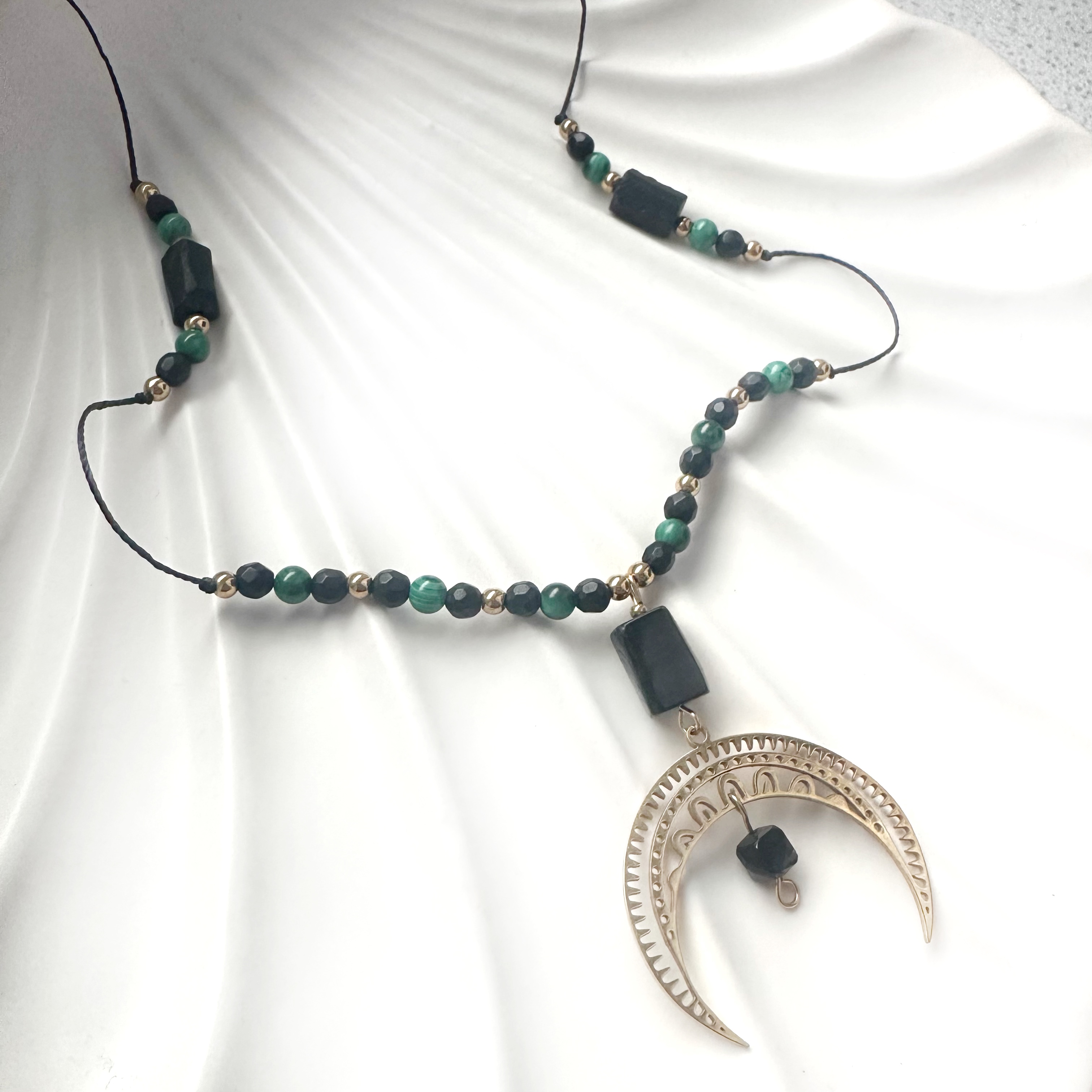Ten wyjątkowy naszyjnik mocy łączy starożytną symbolikę lunuli z potężnym działaniem kamieni ochronnych i transformujących. To biżuteria dla kobiet świadomych swojej siły, intuicji i wewnętrznej mądrości.