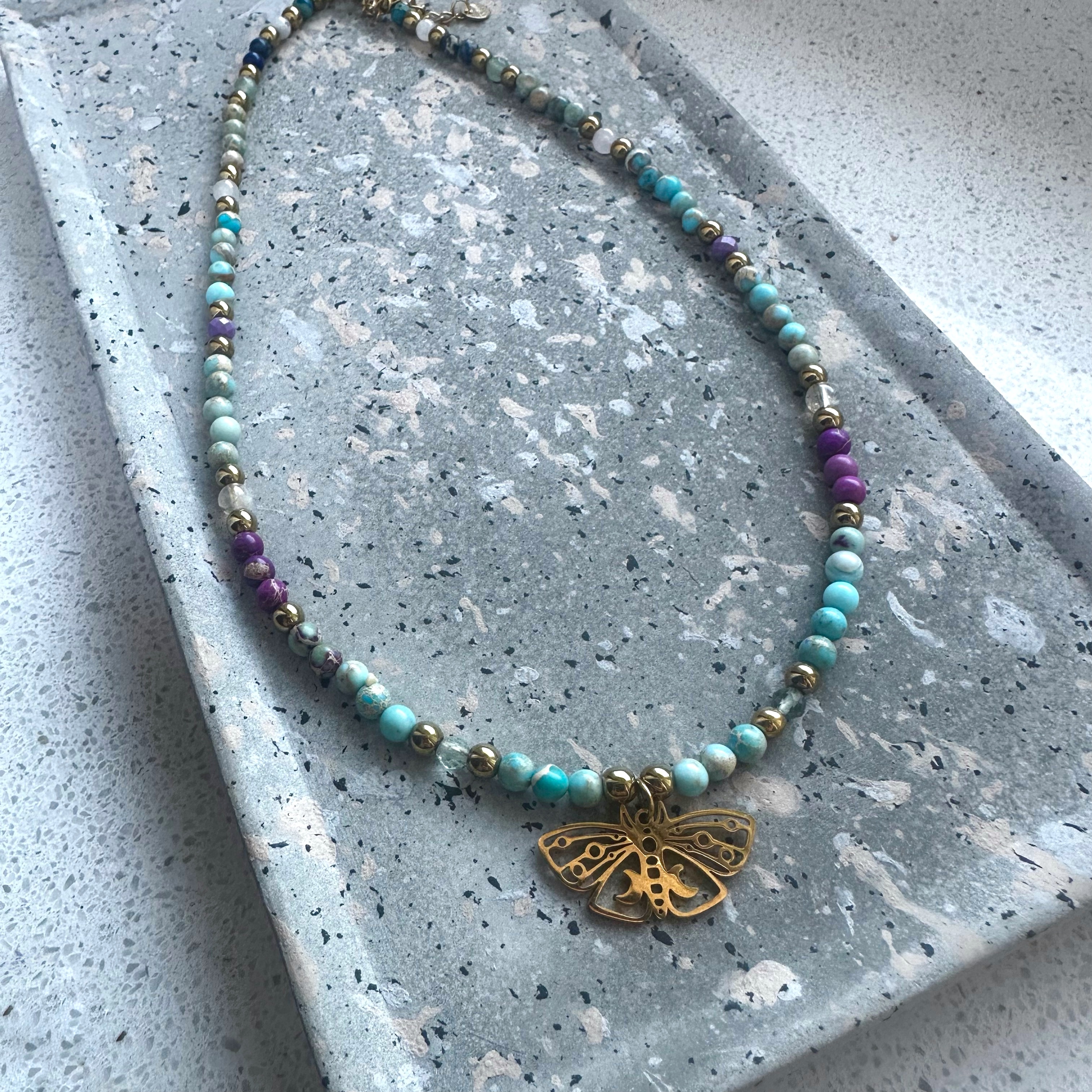 Naszyjnik z motylem i księżycami