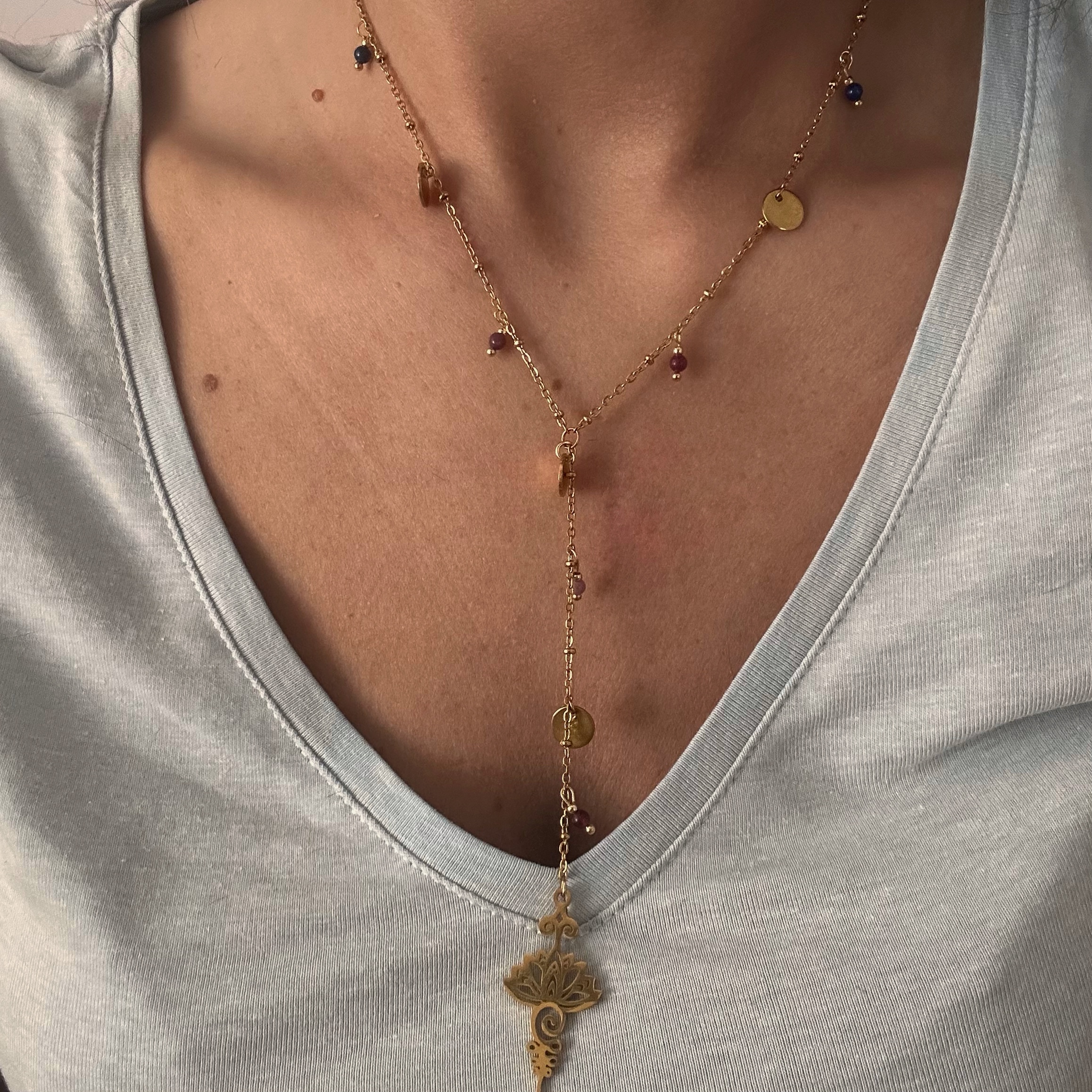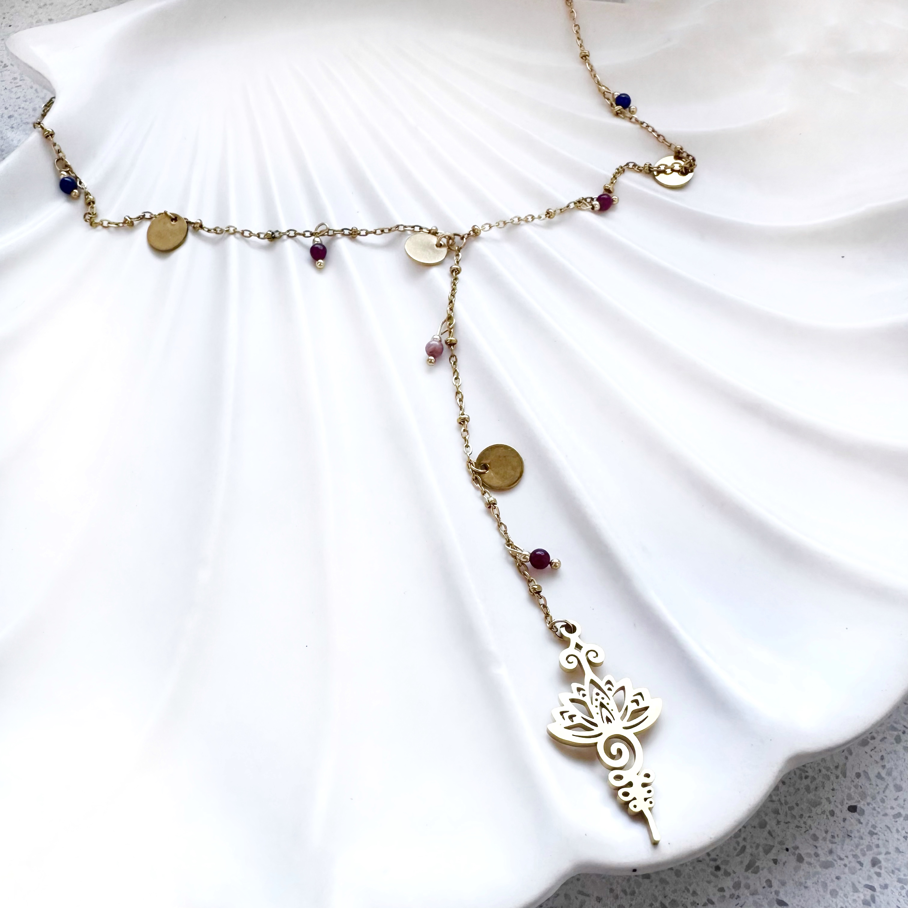 Naszyjnik ochronny z lotosem i kamieniami mocy