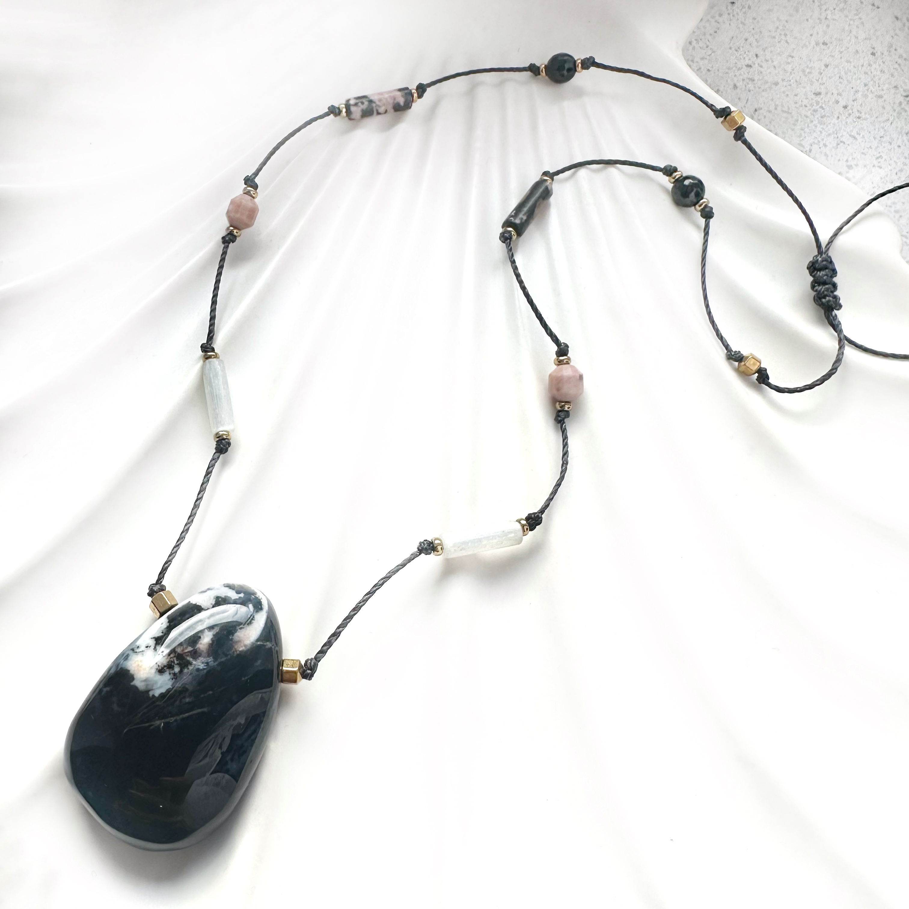 Ten naszyjnik mocy został stworzony jako amulet równowagi pomiędzy ochroną a uzdrawianiem serca. Łączy w sobie energię ugruntowania, oczyszczenia oraz delikatnej, ale głębokiej pracy emocjonalnej.