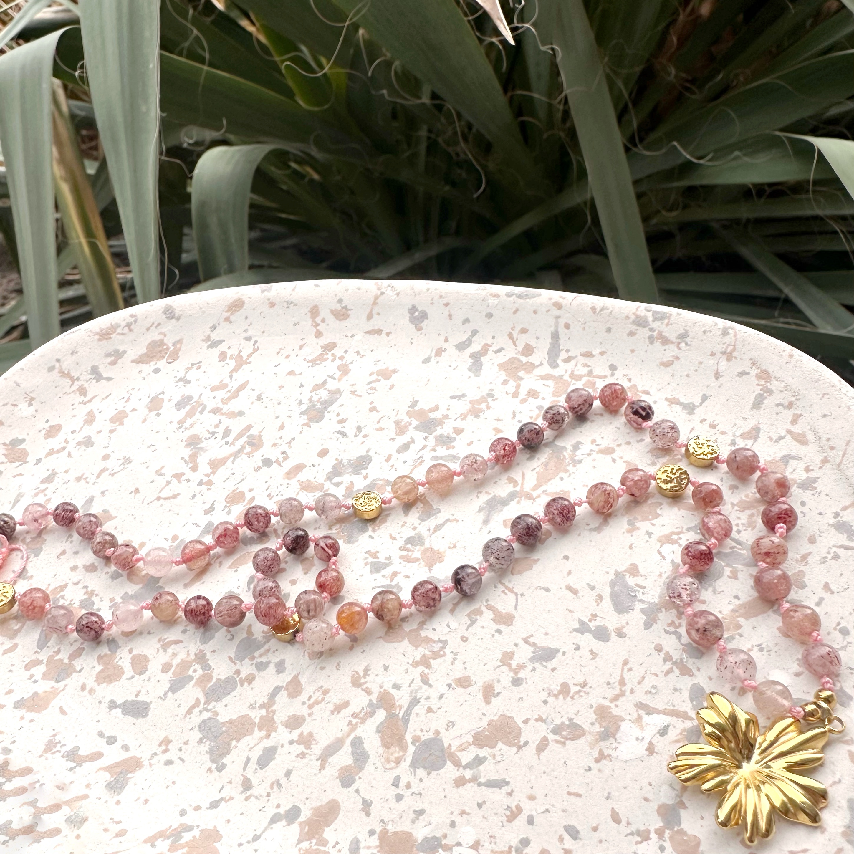 Połączenie kwiatu oraz kwarcu truskawkowego tworzy talizman otwierania serca, budzenia delikatności i wzmacniania kobiecej aury przyciągania. To energia lekkości, wdzięku i emocjonalnego rozkwitu.