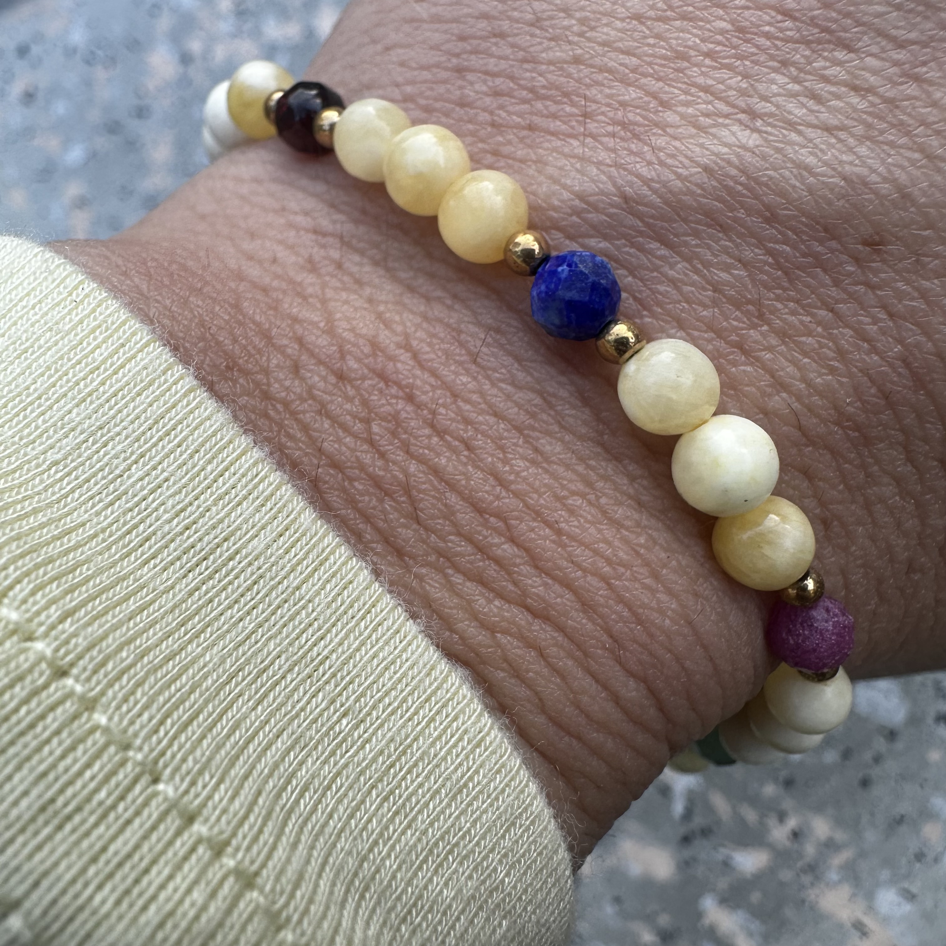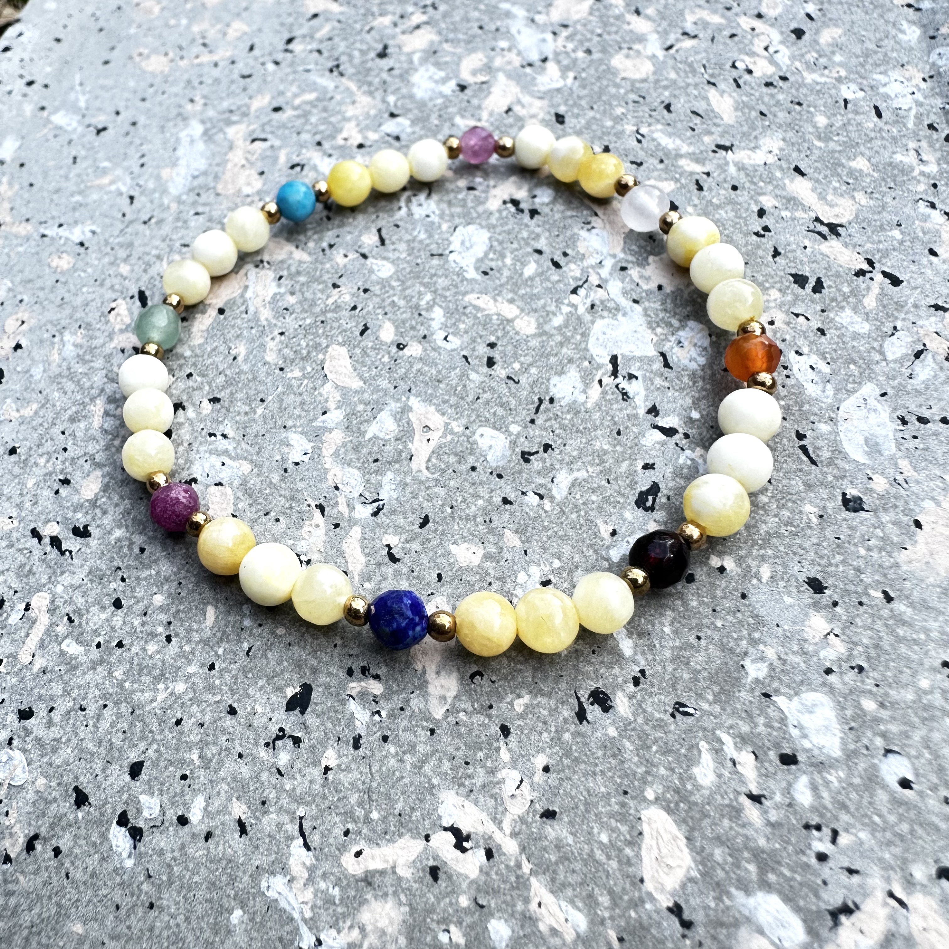 Ta bransoletka została stworzona jako talizman wspierający miłość, obfitość, ochronę oraz przyciąganie dobrych wydarzeń. Kompozycja naturalnych kamieni łączy energię serca, siły życiowej i harmonii, tworząc biżuterię, która może towarzyszyć na co dzień jako symbol intencji i dobrej energii.