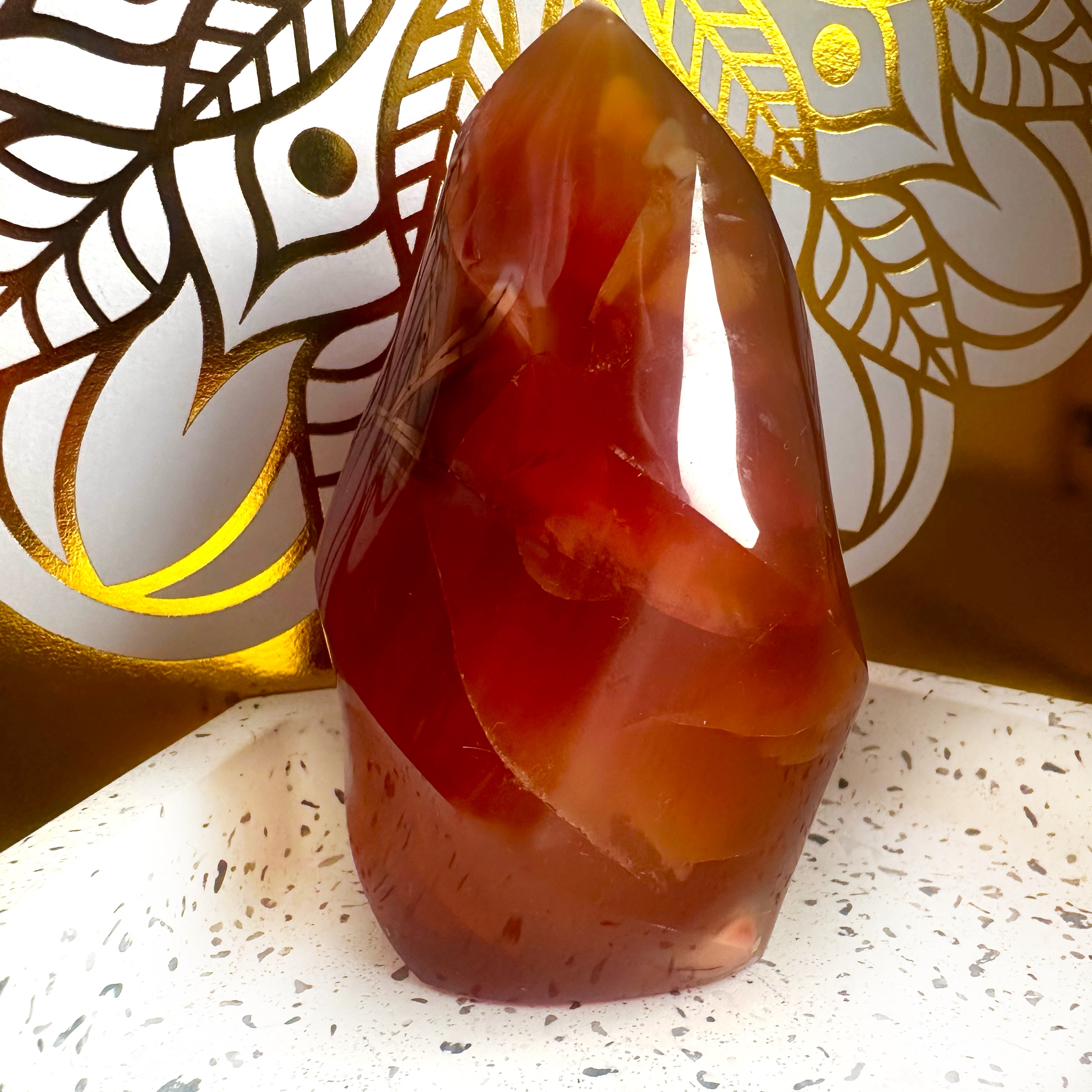 To kamień ruchu, pasji, kreatywności i seksualności. Forma płomienia „podnosi” energię do góry – z czakry podstawy do sakralnej i dalej do splotu słonecznego.