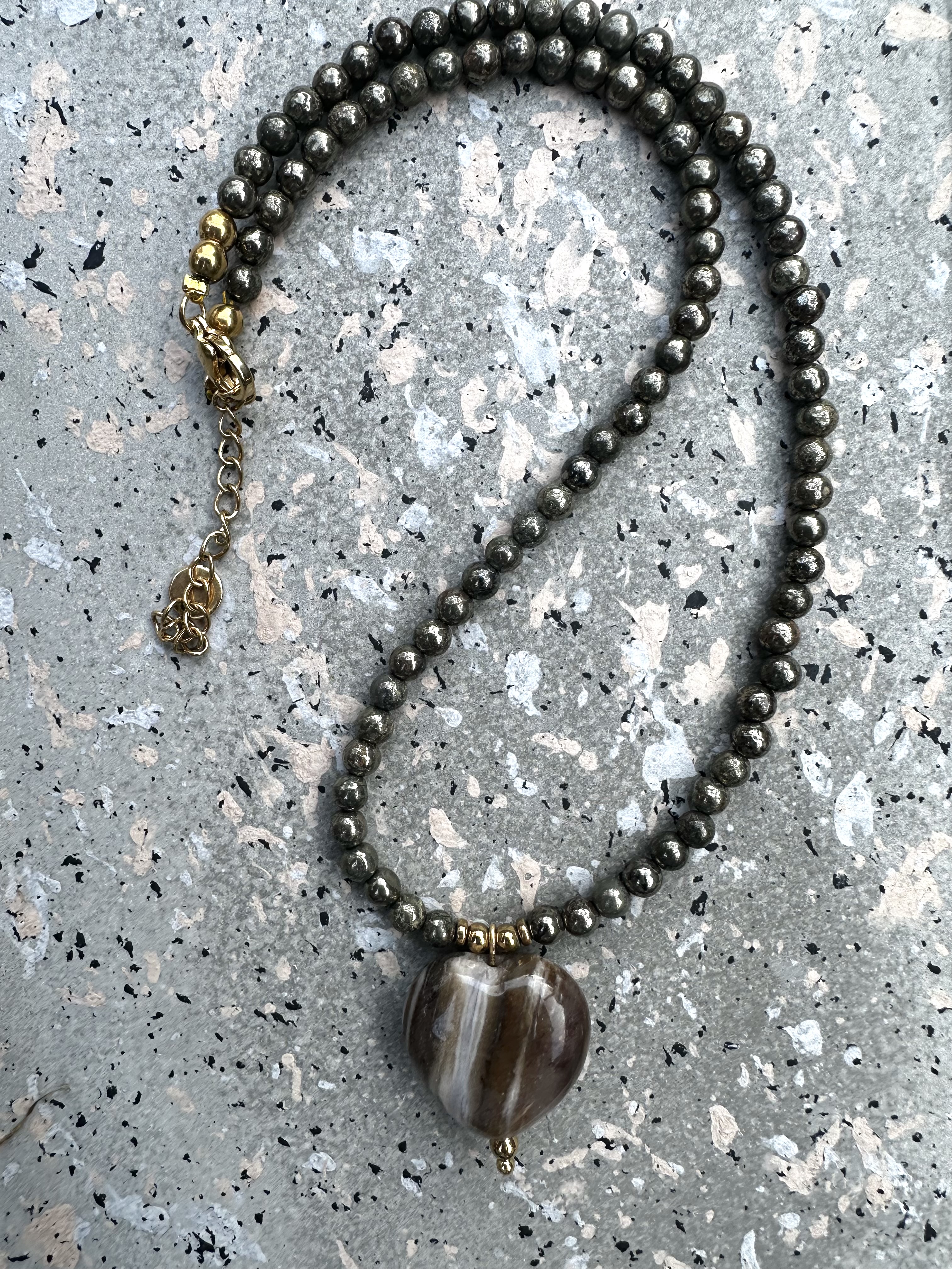 Naszyjnik HEART – Piryt i Jadeit